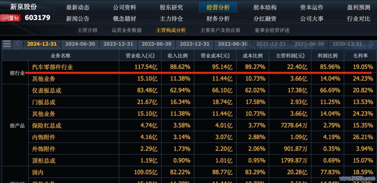 这个新泉股份啊,主要做汽车零部件的,一年赚的钱可多了,已经超过一百亿啦!啥叫汽车零部件呢?就是汽车里的仪表盘、门板、保险杠、内饰,还有车顶那些东西,它全做。为啥它的业绩增长得这么快呢?因为它成功进入了新能源汽车这个领域,给理想汽车、吉利汽车、广汽新能源和比亚迪这些品牌的新能源车都提供了配套产品。所以说呀,它的业绩好不好,跟新能源汽车卖得多不多关系可大了。