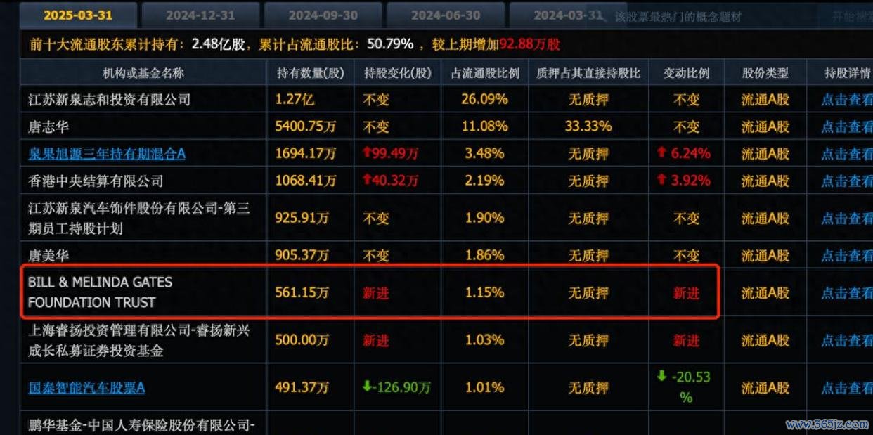 你听说了吗?连比尔·盖茨这种大佬都开始买咱们的A股了。就在今年3月,比尔·盖茨一口气买进了好几家中国公司,其中新泉股份买了561万股,直接成了这家公司的第七大股东呢!