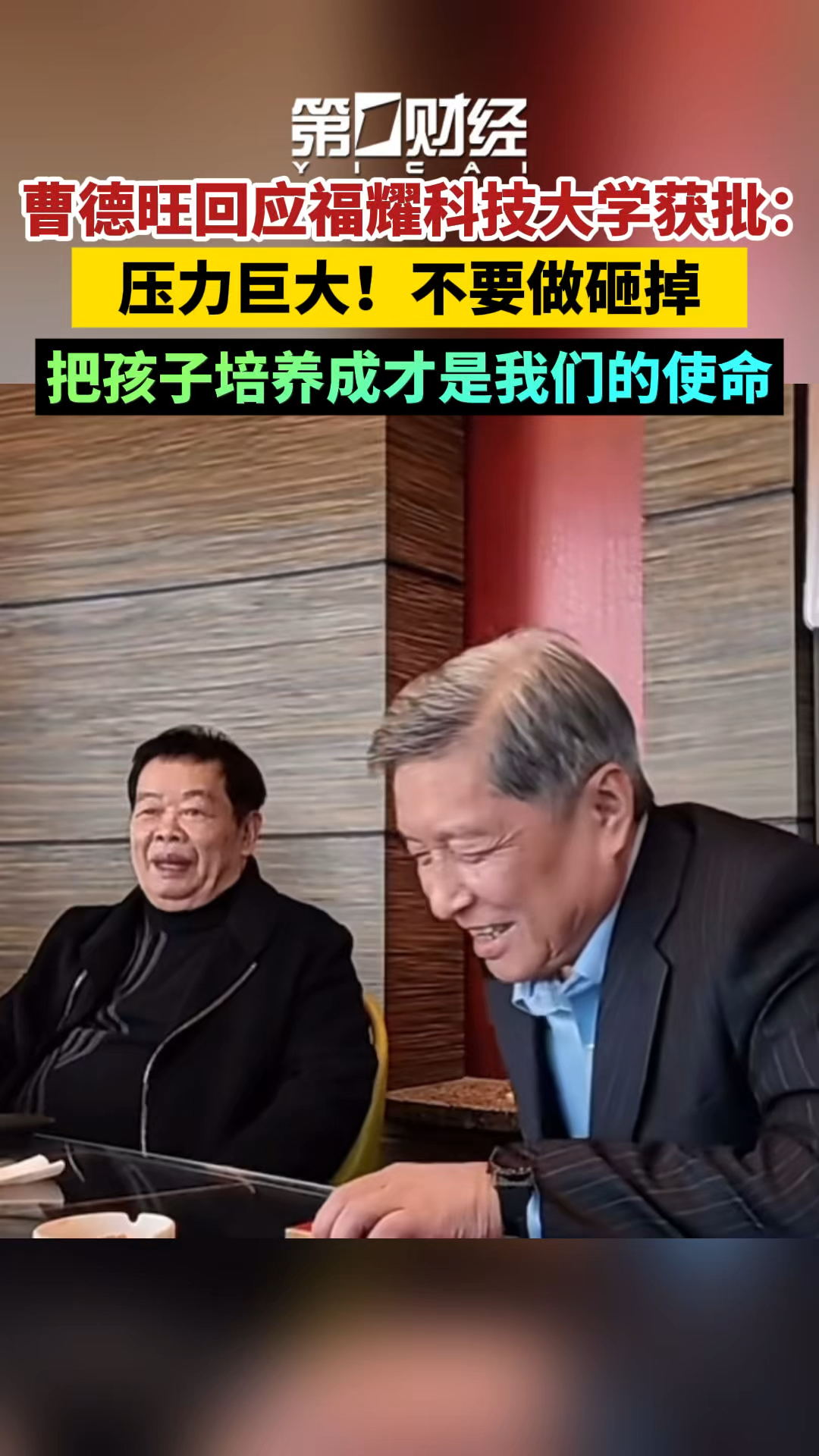 00'57'' 曹德旺回应福耀科技大学获批:压力巨大!不要做砸掉,把孩子培养成才是我们的使命曹德旺回应福耀科技大学获批:压力巨大!不要做砸掉,把孩子培养成才是我们的使命
