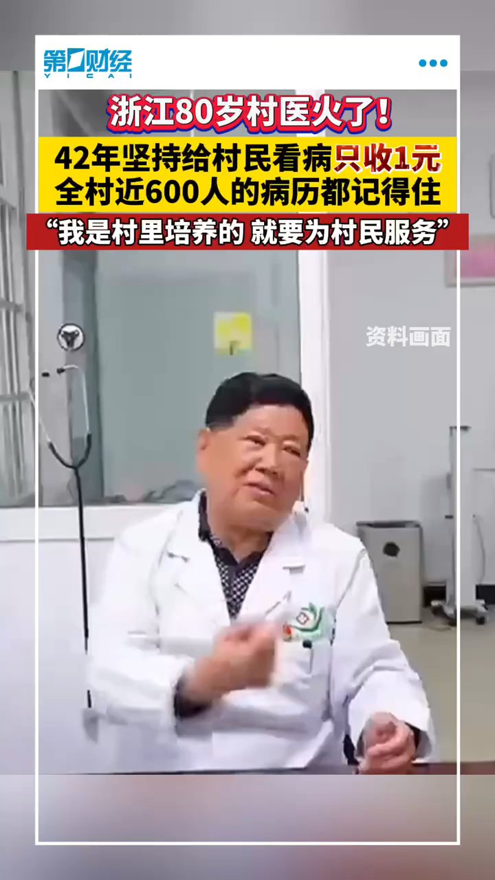 00'11'' 浙江80岁村医火了!42年坚持给村民看病只收1元,全村近600人的病历都记得住,“我是村里培养的,就要为村民服务”浙江80岁村医火了!42年坚持给村民看病只收1元,全村近600人的病历都记得住,“我是村里培养的,就要为村民服务”
